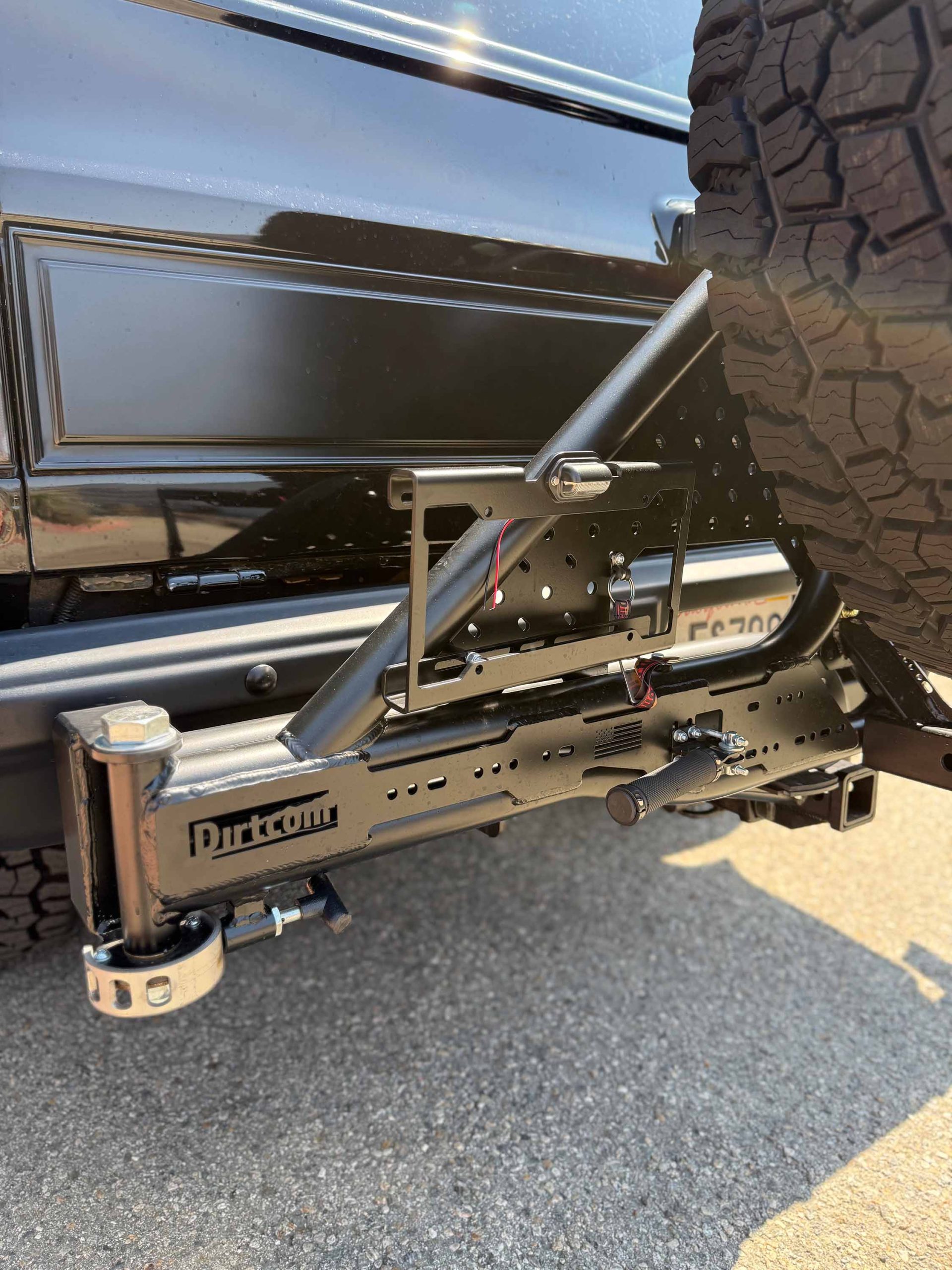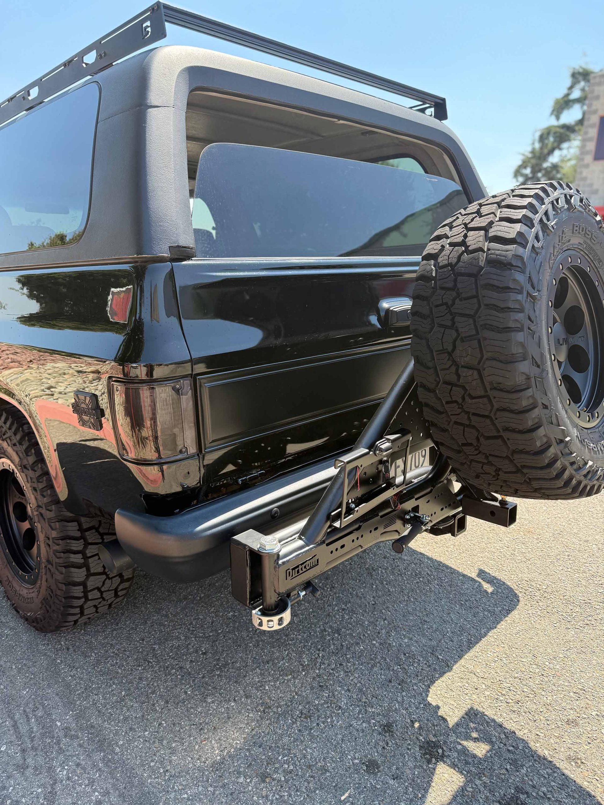 Dirtcom’s TrailSwing® HD fits your 1969-1994 Chevrolet K5-K10-K15 Blazer! If you’ve upgraded to bigger tires and can’t find a place to put your full size spare, then your search ends here! This is a great alternative to a heavy and intrusive full metal rear bumper replacement. At 70 lbs. this high clearance tire carrier was designed to offer you the best in functionality without compromising aesthetics. Check out the features below!
