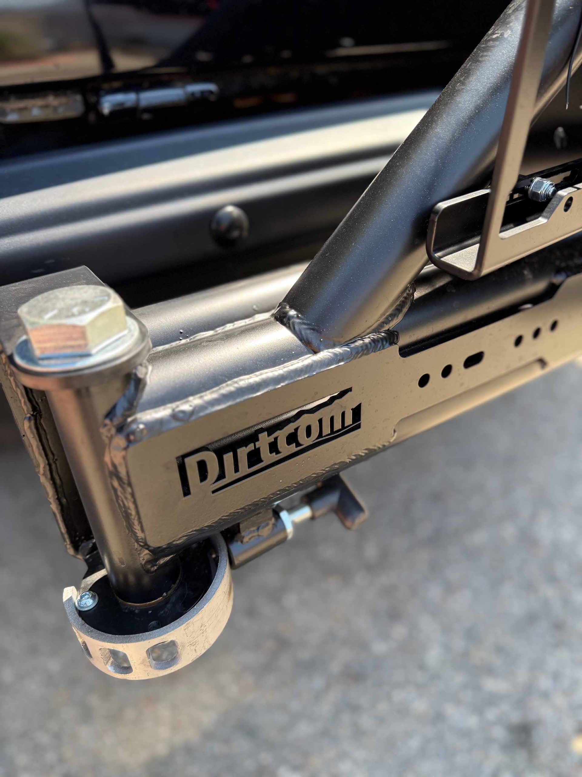 - Dirtcom EPDM rubber pad will add extra strength and support. We located this directly under the tire to relieve stress on the hinge to withstand rough off road conditions. Strategically placed rubber stoppers are placed throughout to absorb vibration and keep your tire carrier rattle free.